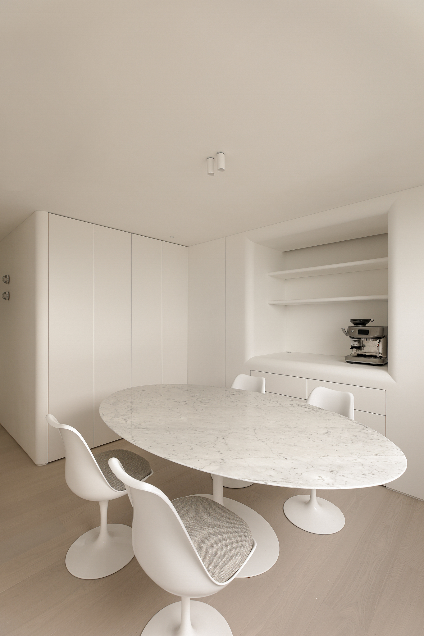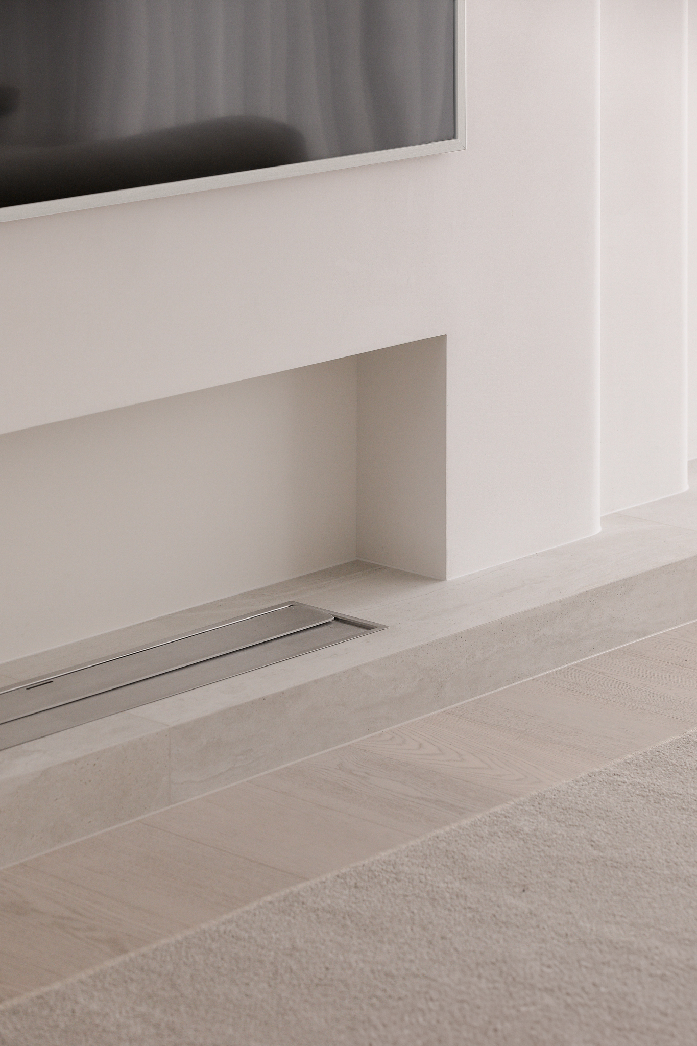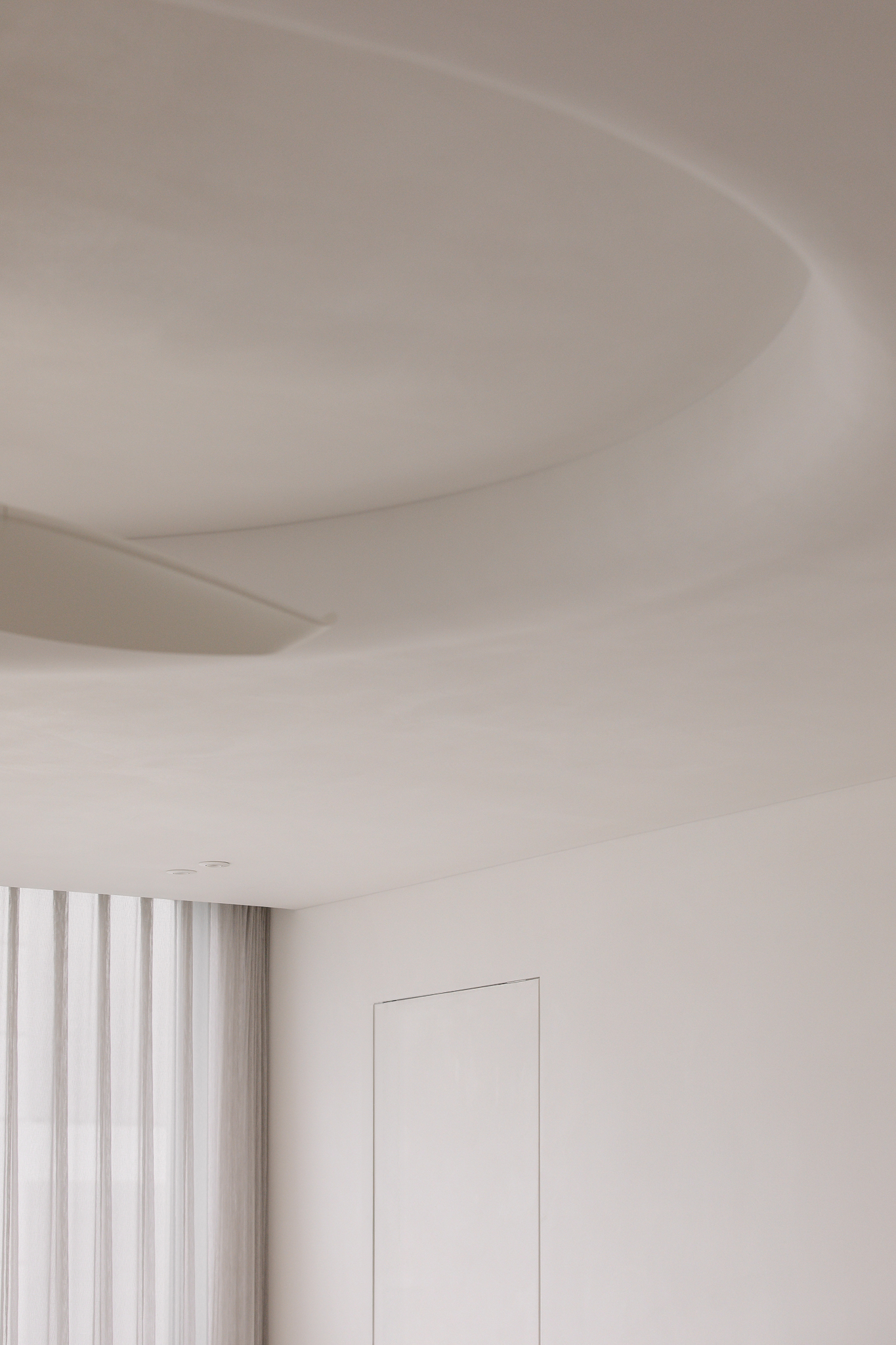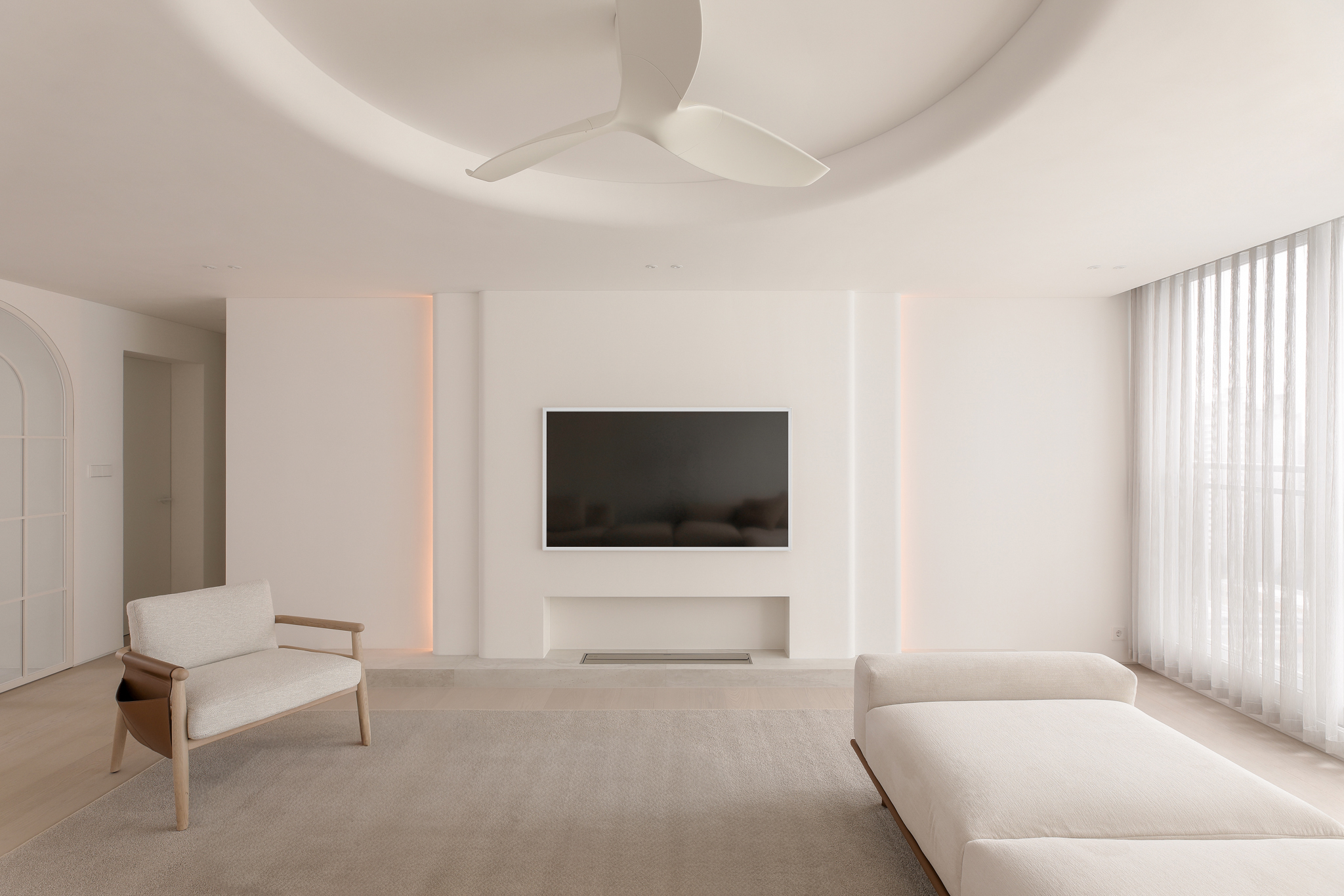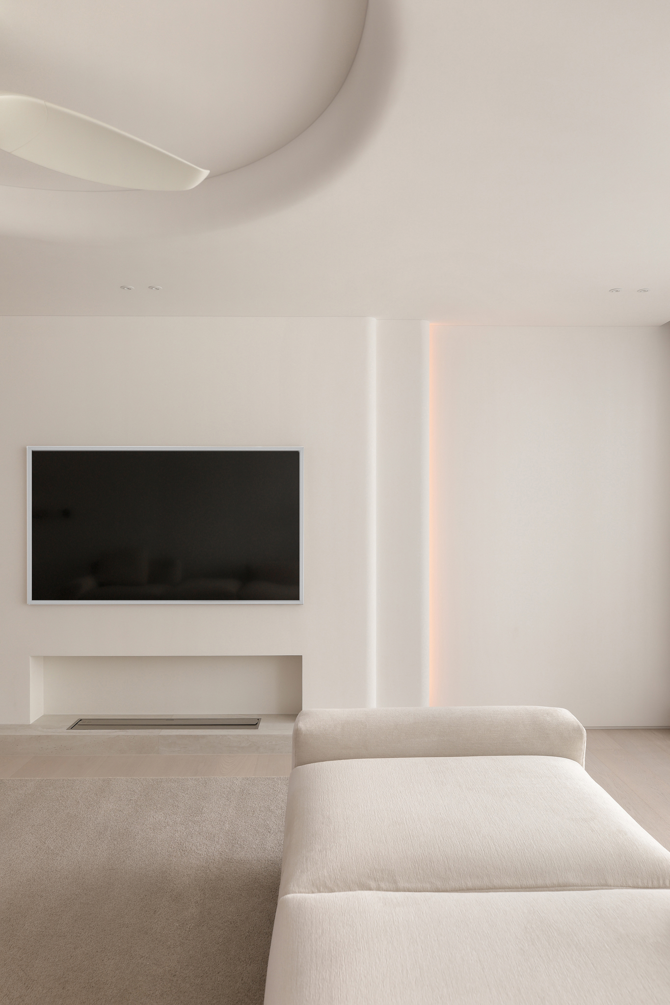 This project blends work and rest by reflecting the client’s lifestyle, opening key spaces to maximize the Han River view and create fluid transitions. Sculptural lime plaster surfaces, system windows, and carefully scaled curves shape a cohesive, light-responsive interior, while the living room’s recessed TV and fireplace form a calm, welcoming retreat.