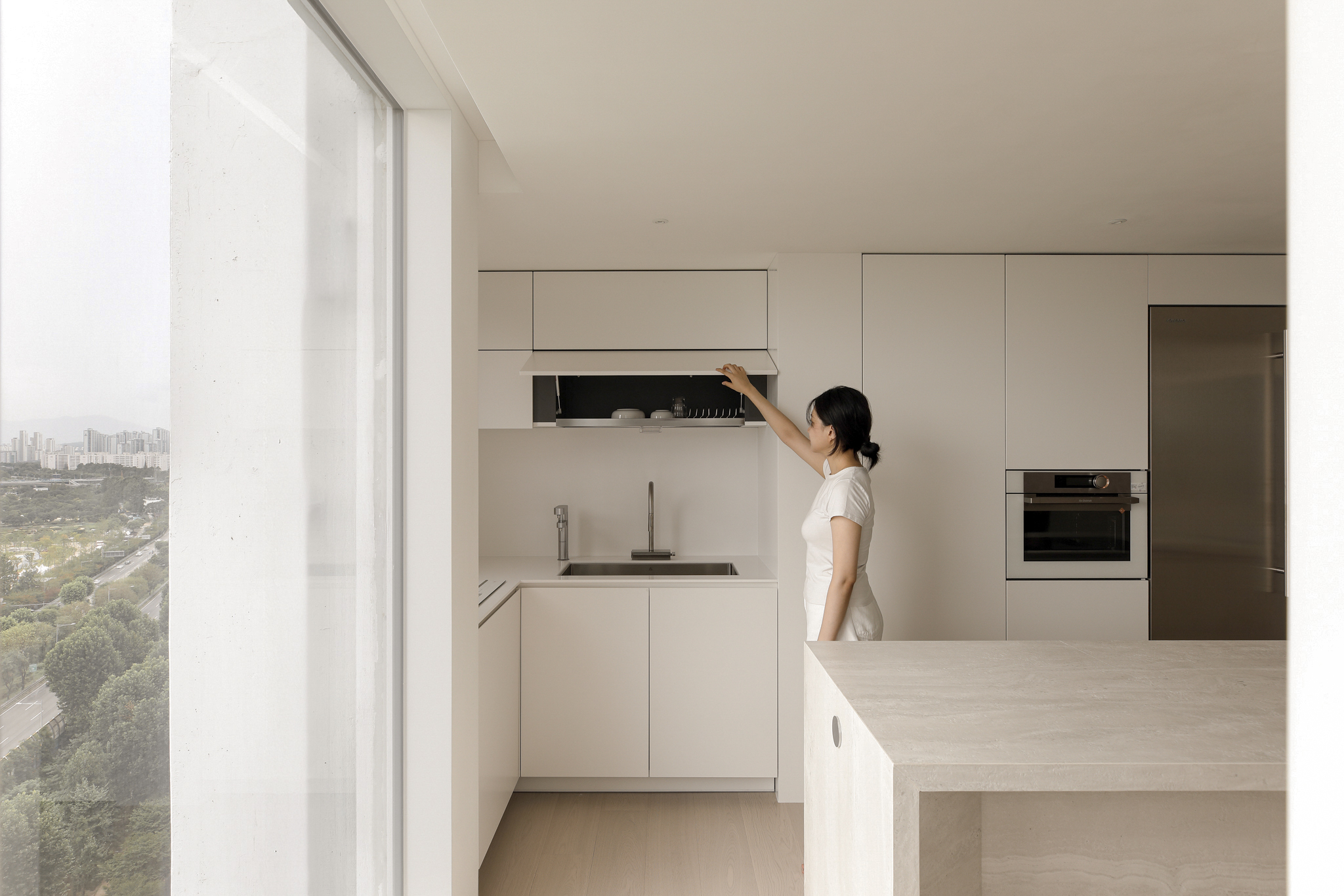 주방 쪽에서 봐도 풍경이 연결되는 느낌을 주었습니다.