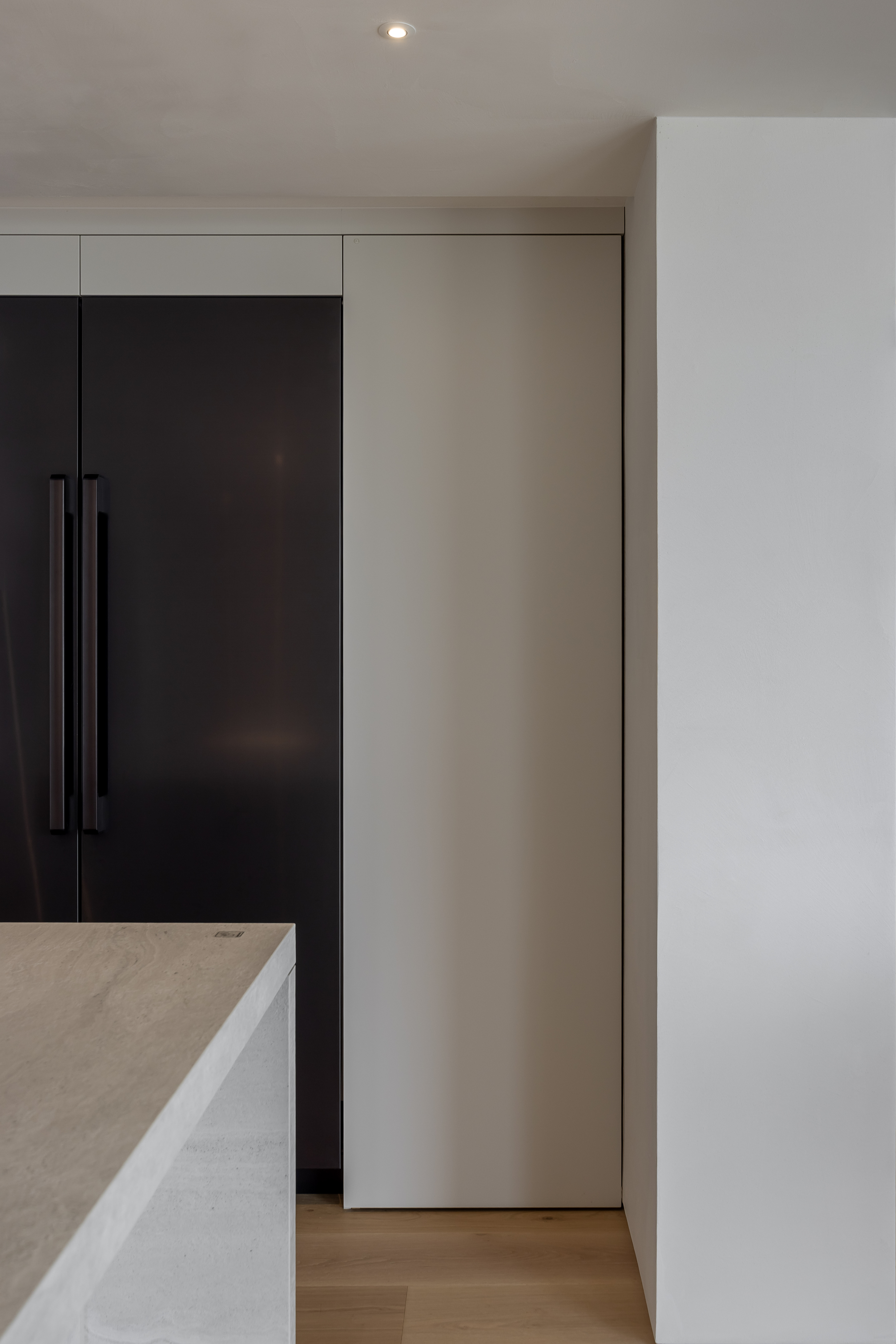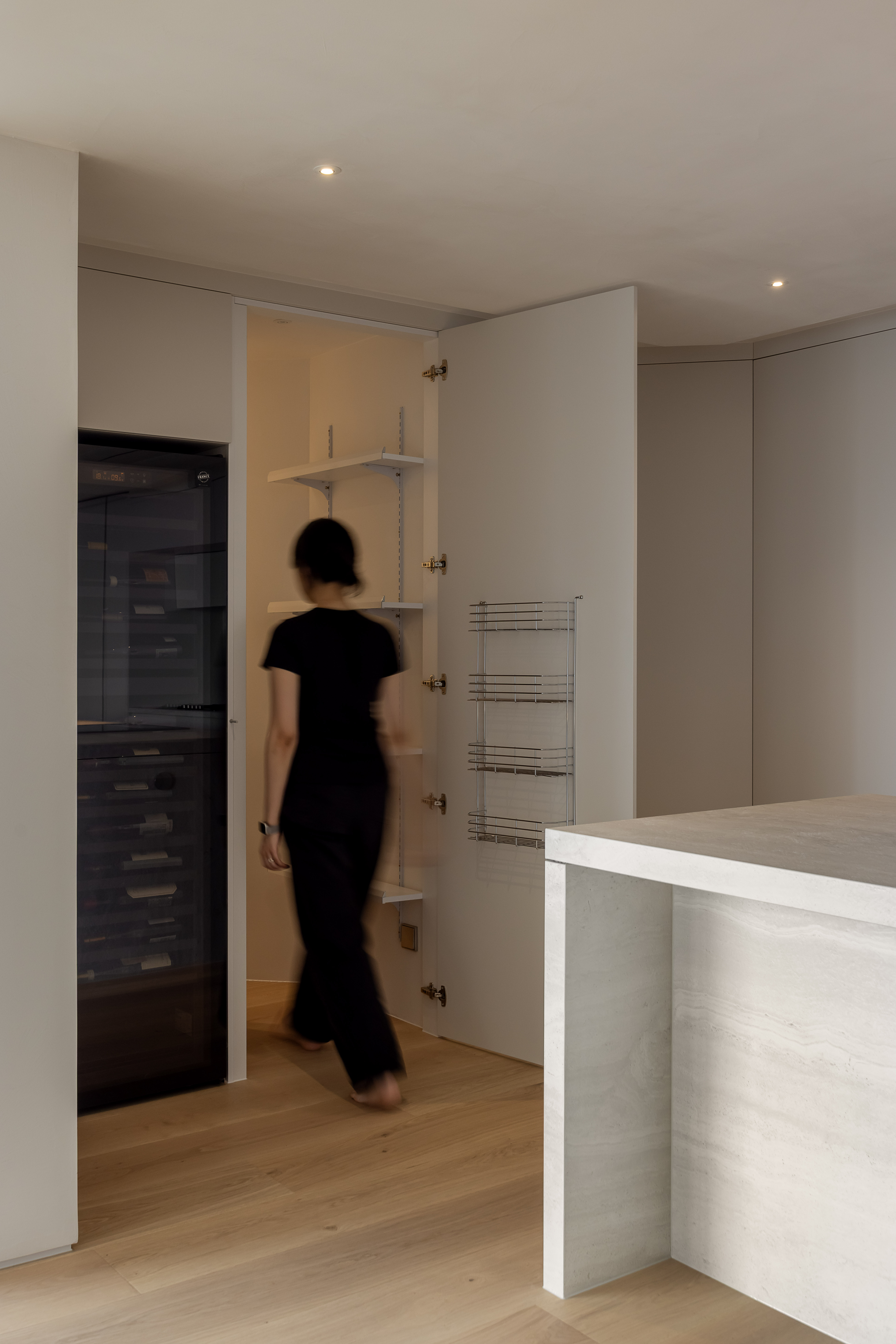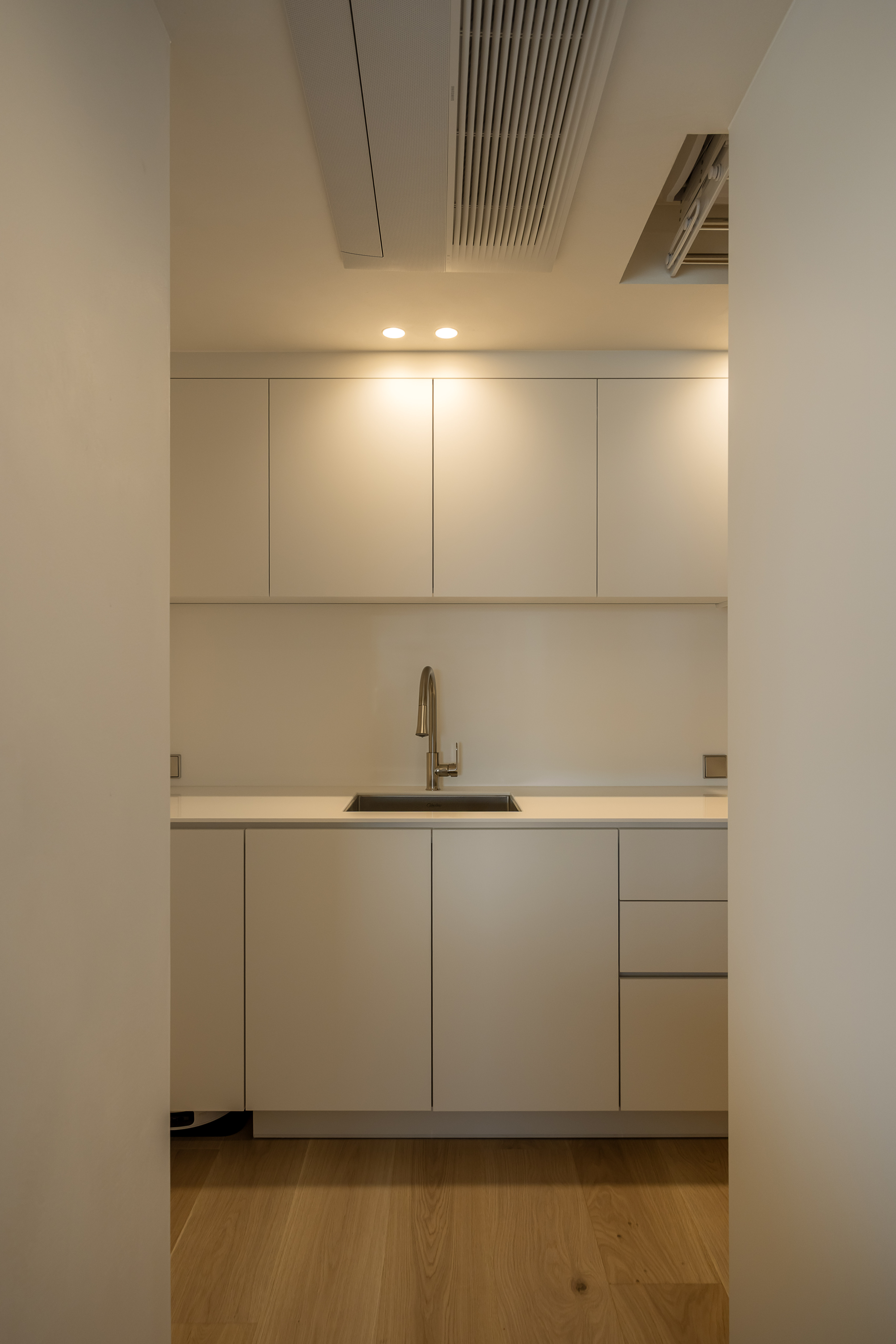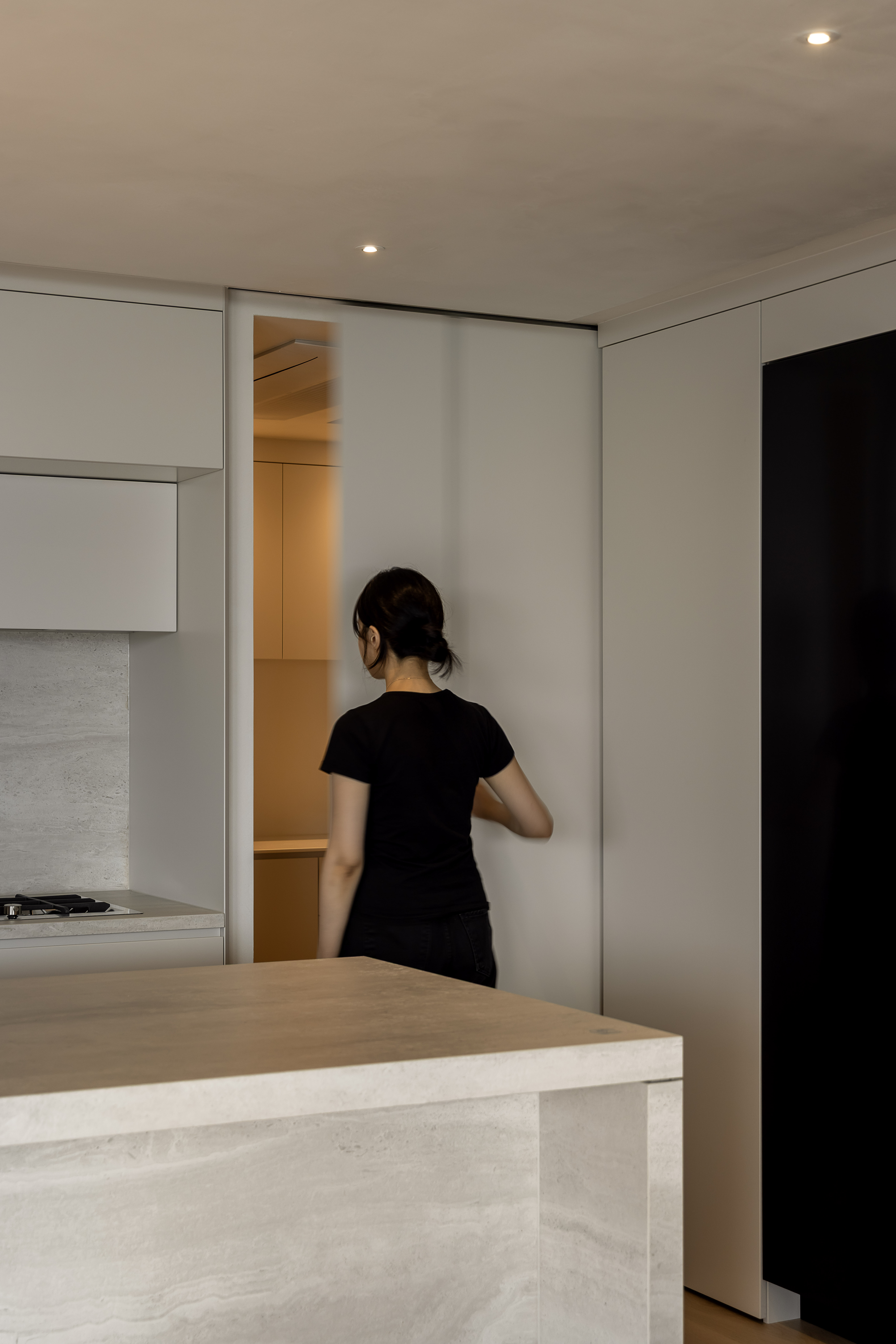 그 외 기능적인 붙박이장이나 주방 캐비닛 많은 기능을 담고 있지만 도어의 비율과 소재를 크림톤으로 단정한 구성을 나타내며, 기존 플라스터 회벽과 은은하게 한 톤으로 어우러지도록 의도했습니다.