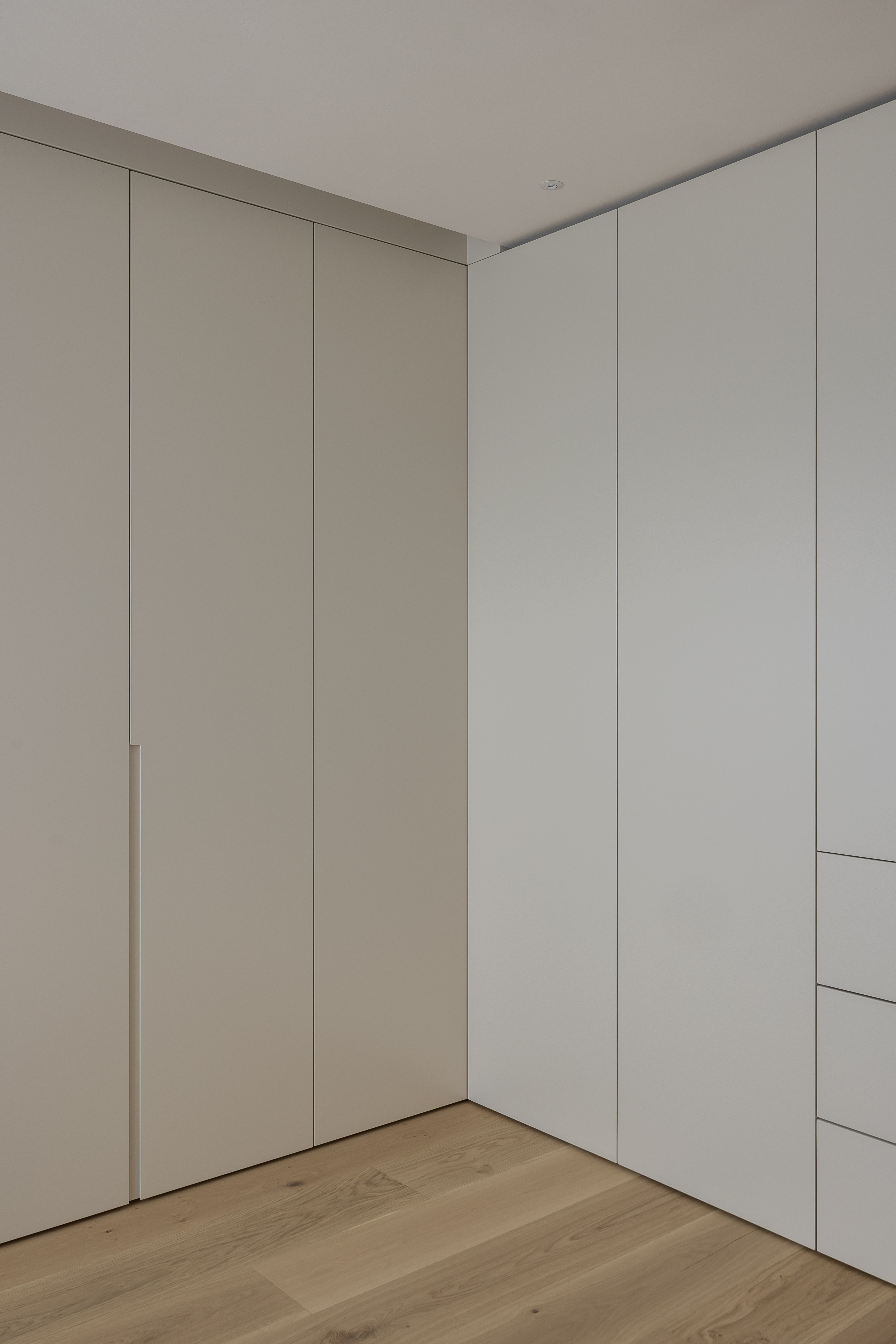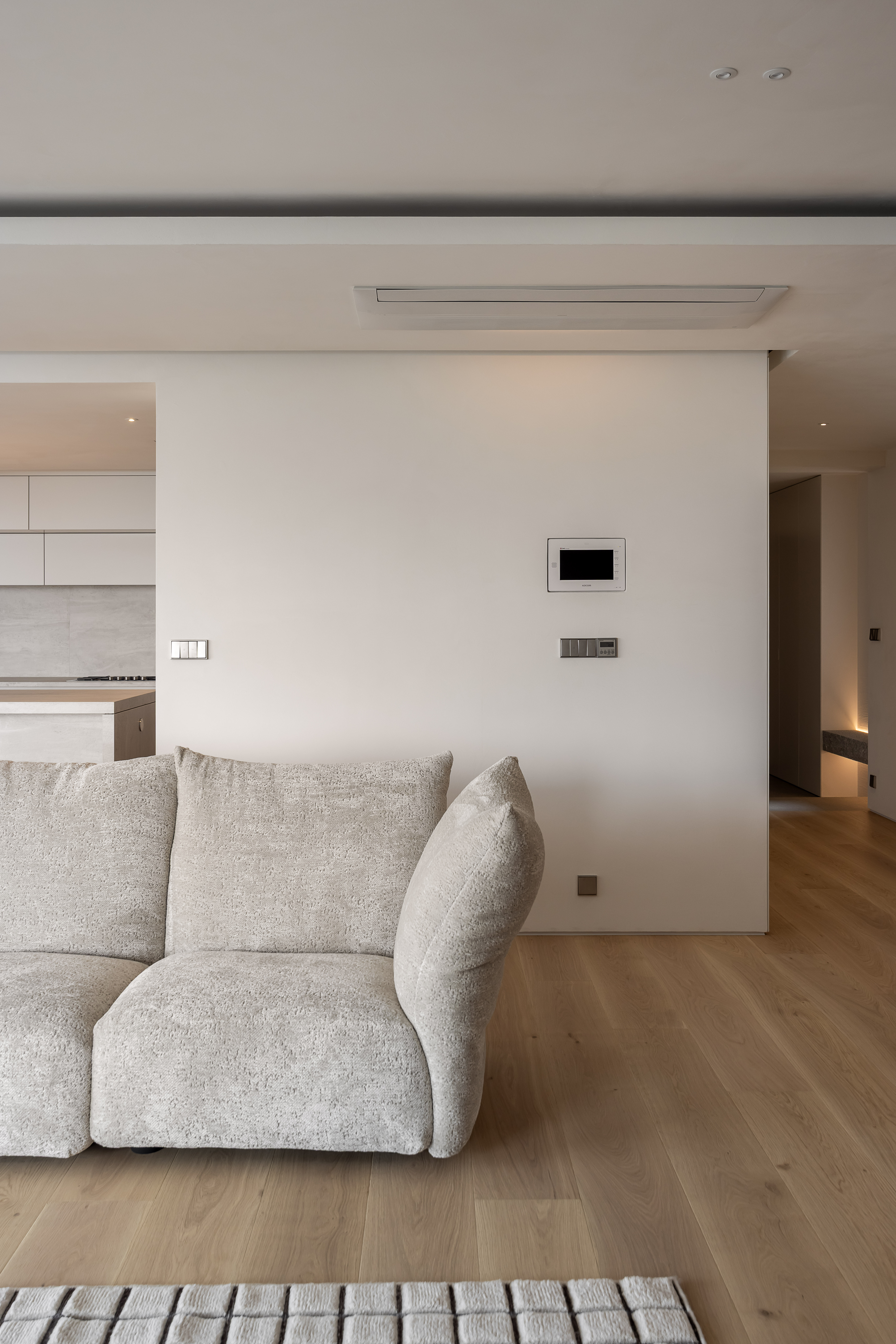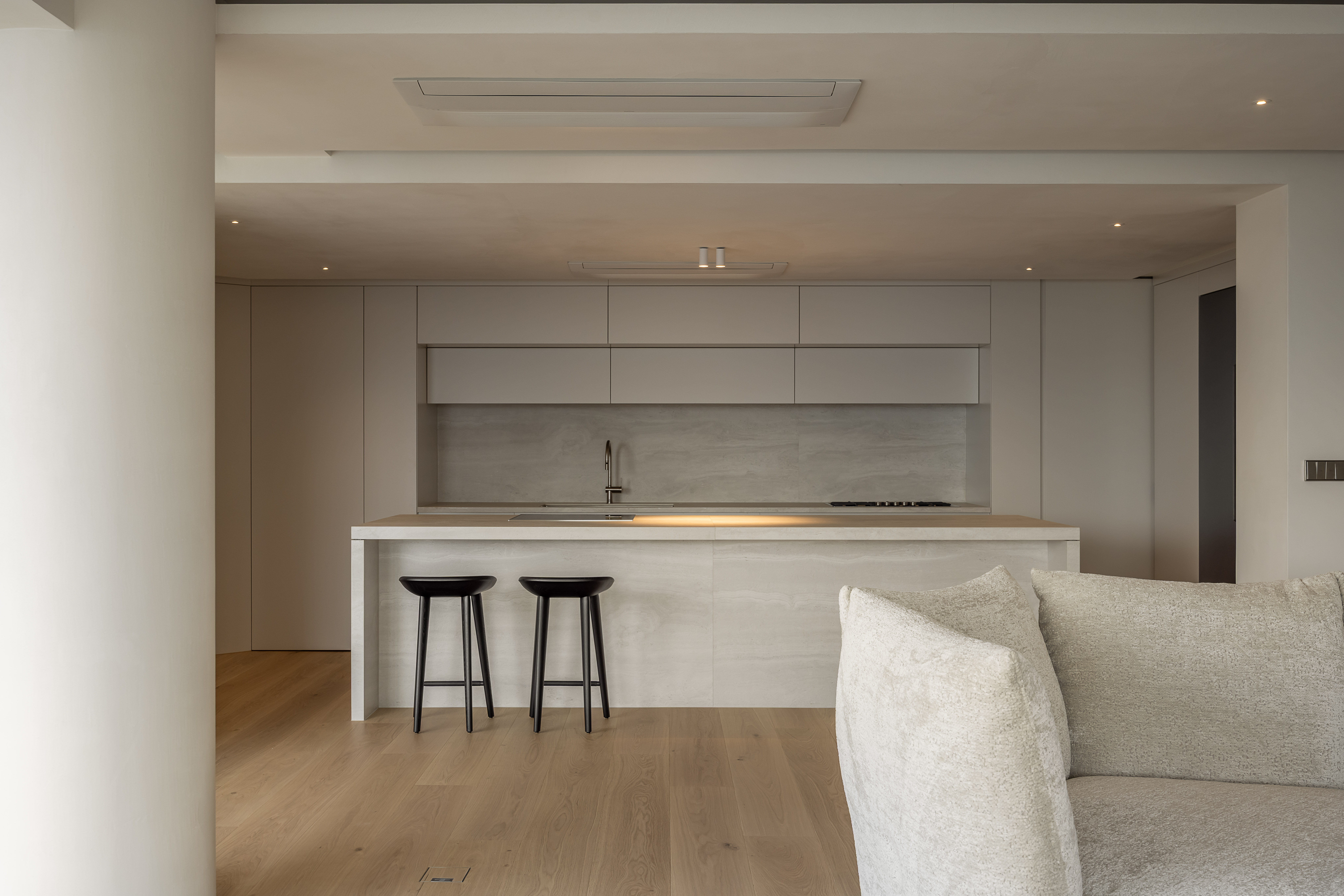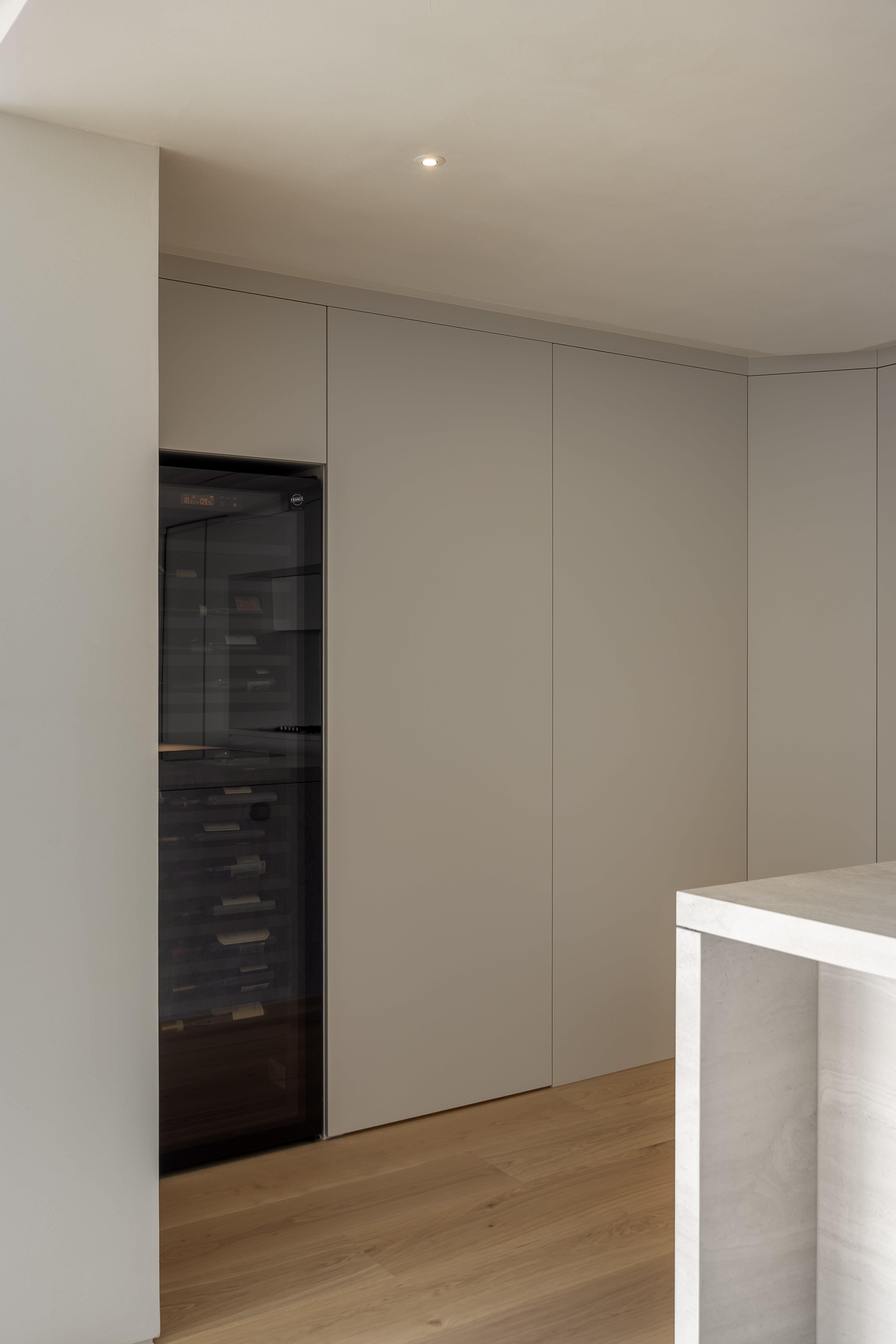그 외 기능적인 붙박이장이나 주방 캐비닛 많은 기능을 담고 있지만 도어의 비율과 소재를 크림톤으로 단정한 구성을 나타내며, 기존 플라스터 회벽과 은은하게 한 톤으로 어우러지도록 의도했습니다.