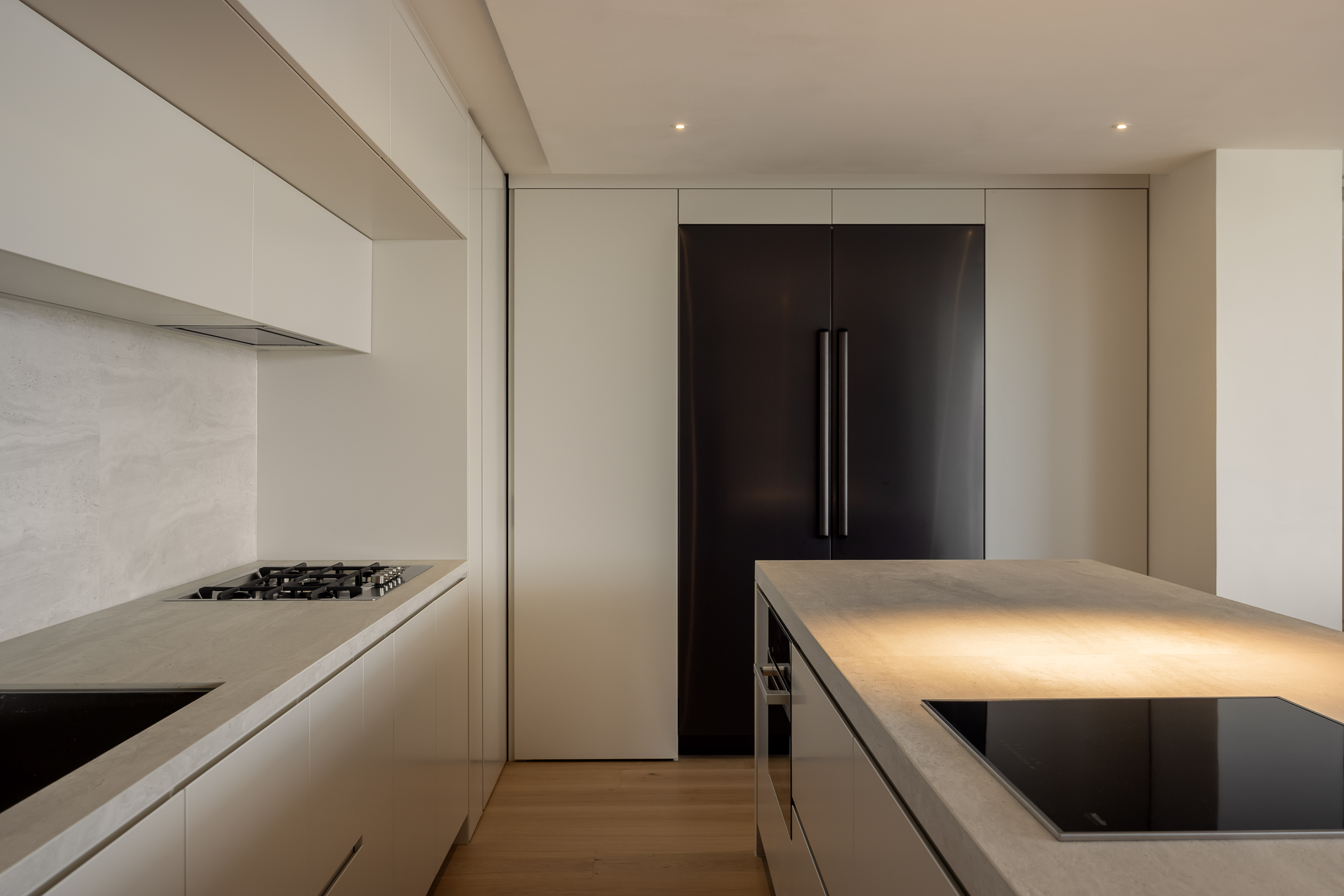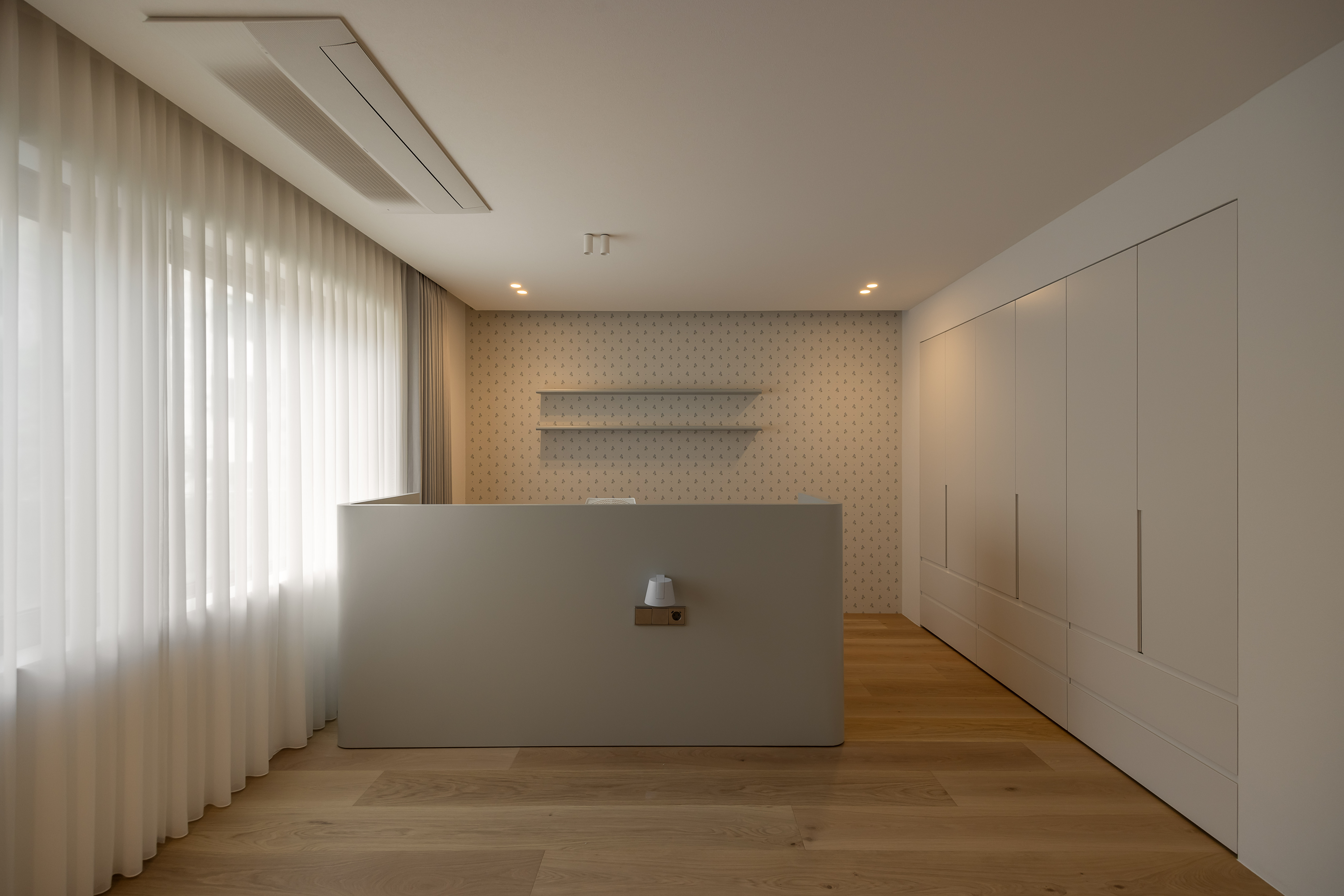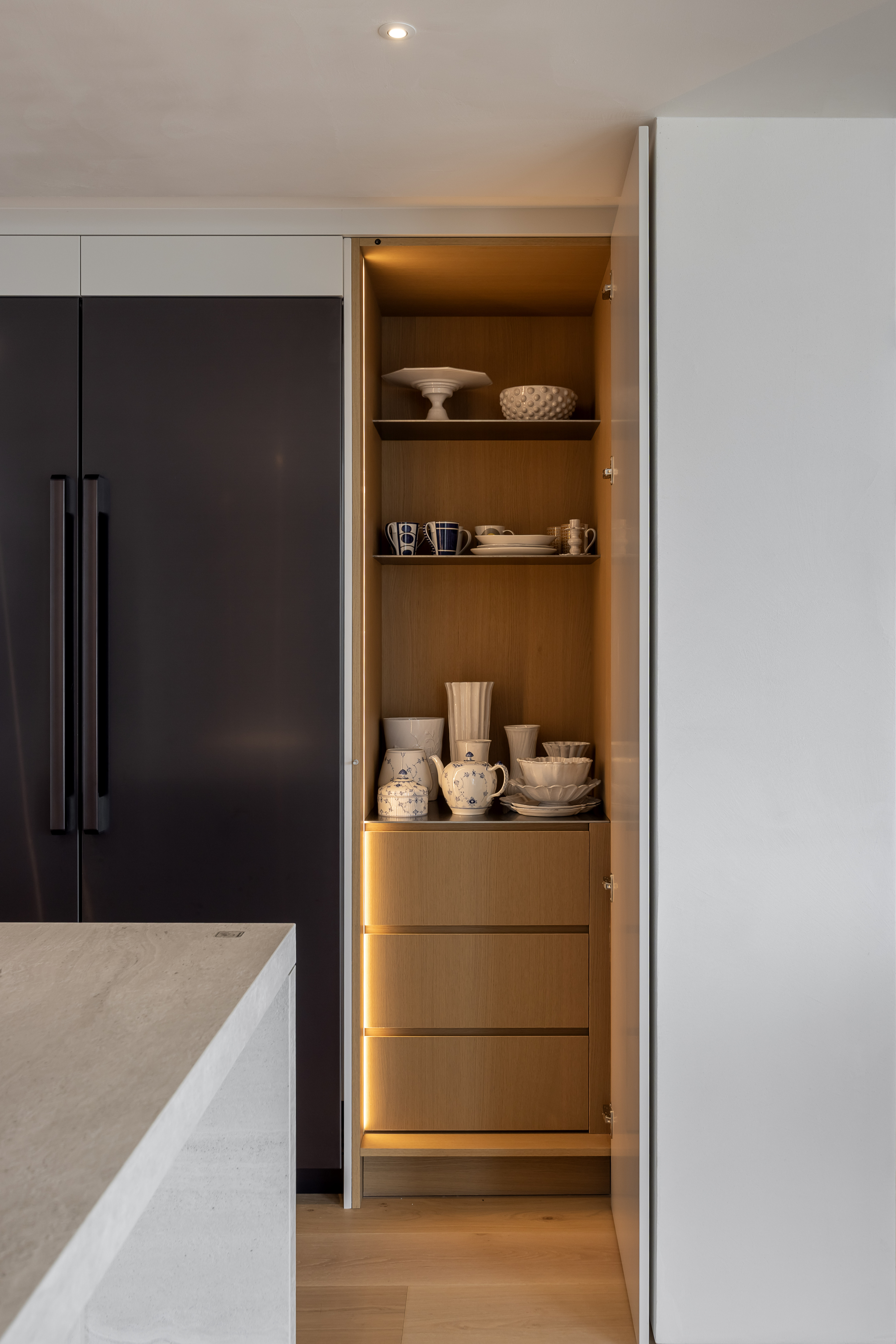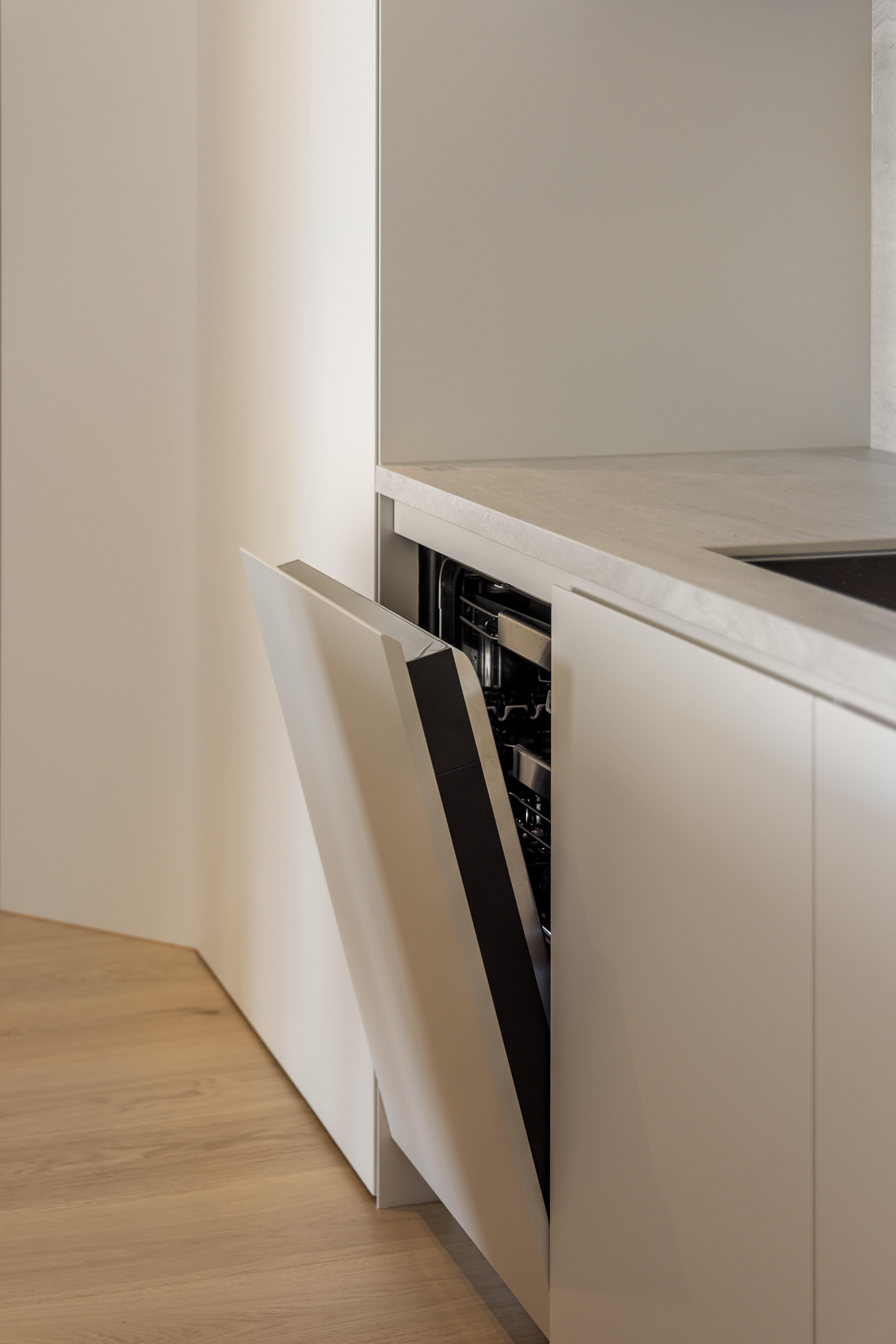 그 외 기능적인 붙박이장이나 주방 캐비닛 많은 기능을 담고 있지만 도어의 비율과 소재를 크림톤으로 단정한 구성을 나타내며, 기존 플라스터 회벽과 은은하게 한 톤으로 어우러지도록 의도했습니다.