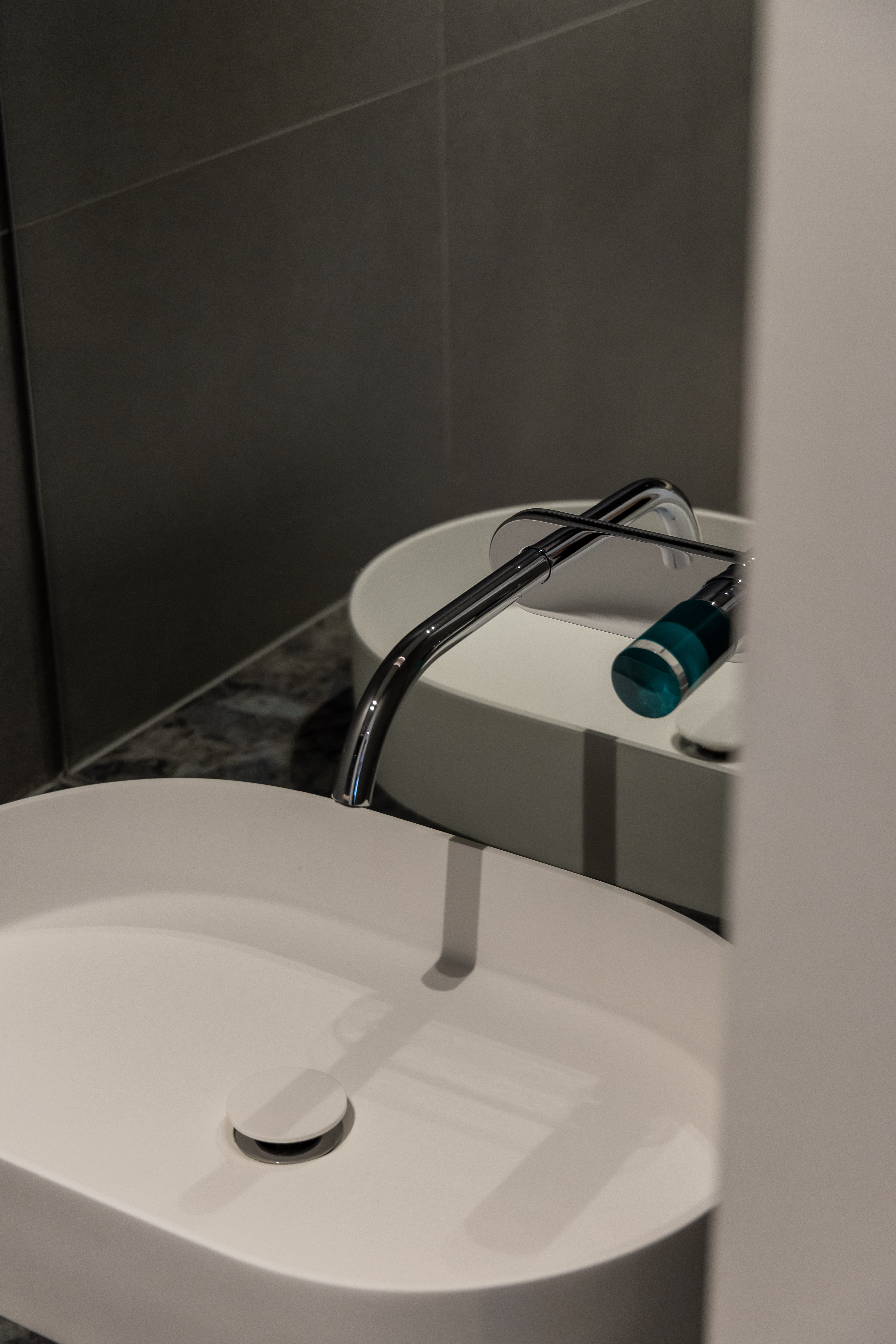 기존 구조는 보통 2가구 혹은 연령대가 높은 세대를 위해 설계되어 주방과 거실이 단절되어 있었고, 3개의 욕실을 갖추고 있었지만 활용도가 아쉬웠습니다. 따라서 각 방과 공용 공간에서 모두 욕실을 편하게 사용할 수 있도록, 하나의 욕실을 둘로 분리하여 4개의 욕실로 재구성해주었습니다.