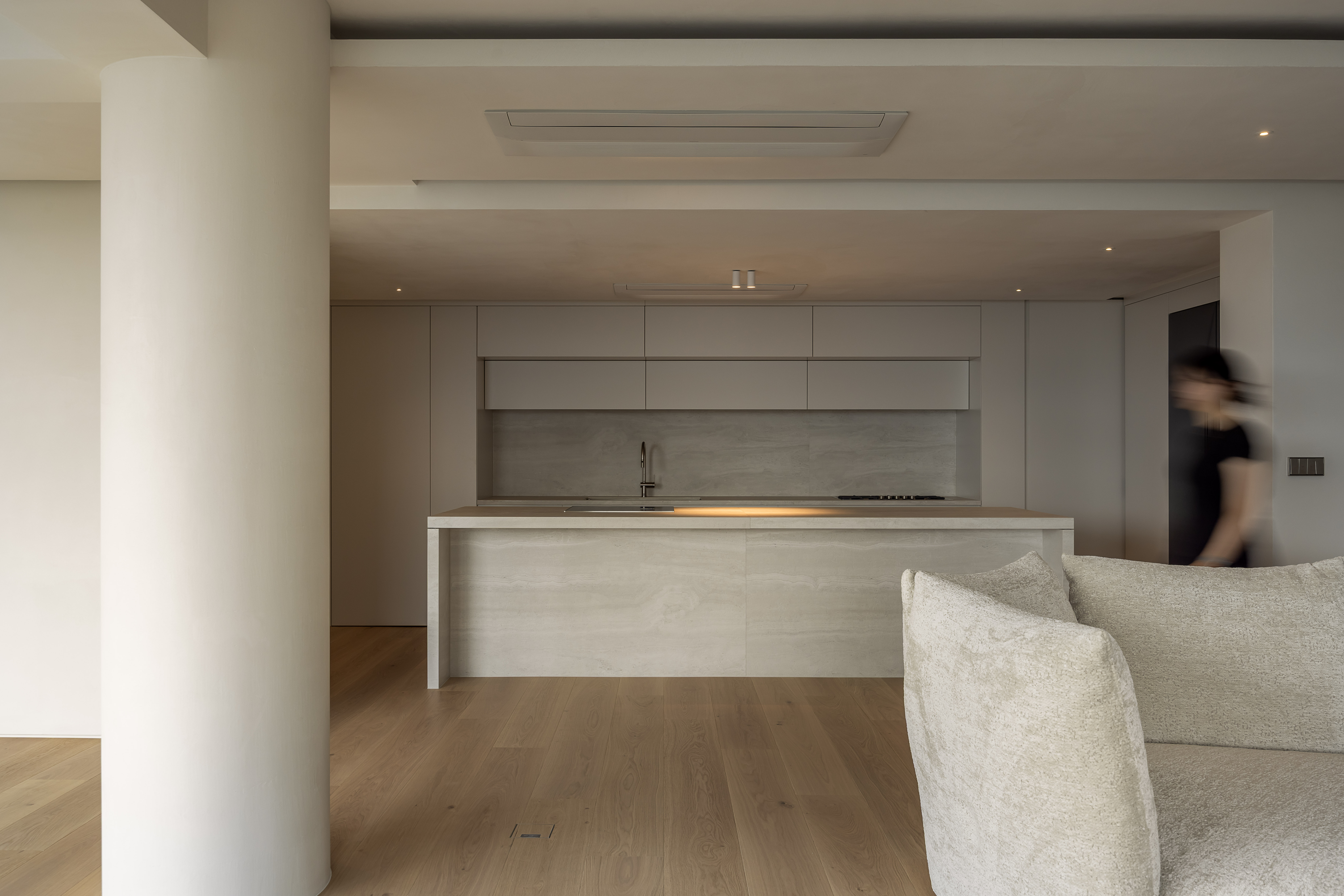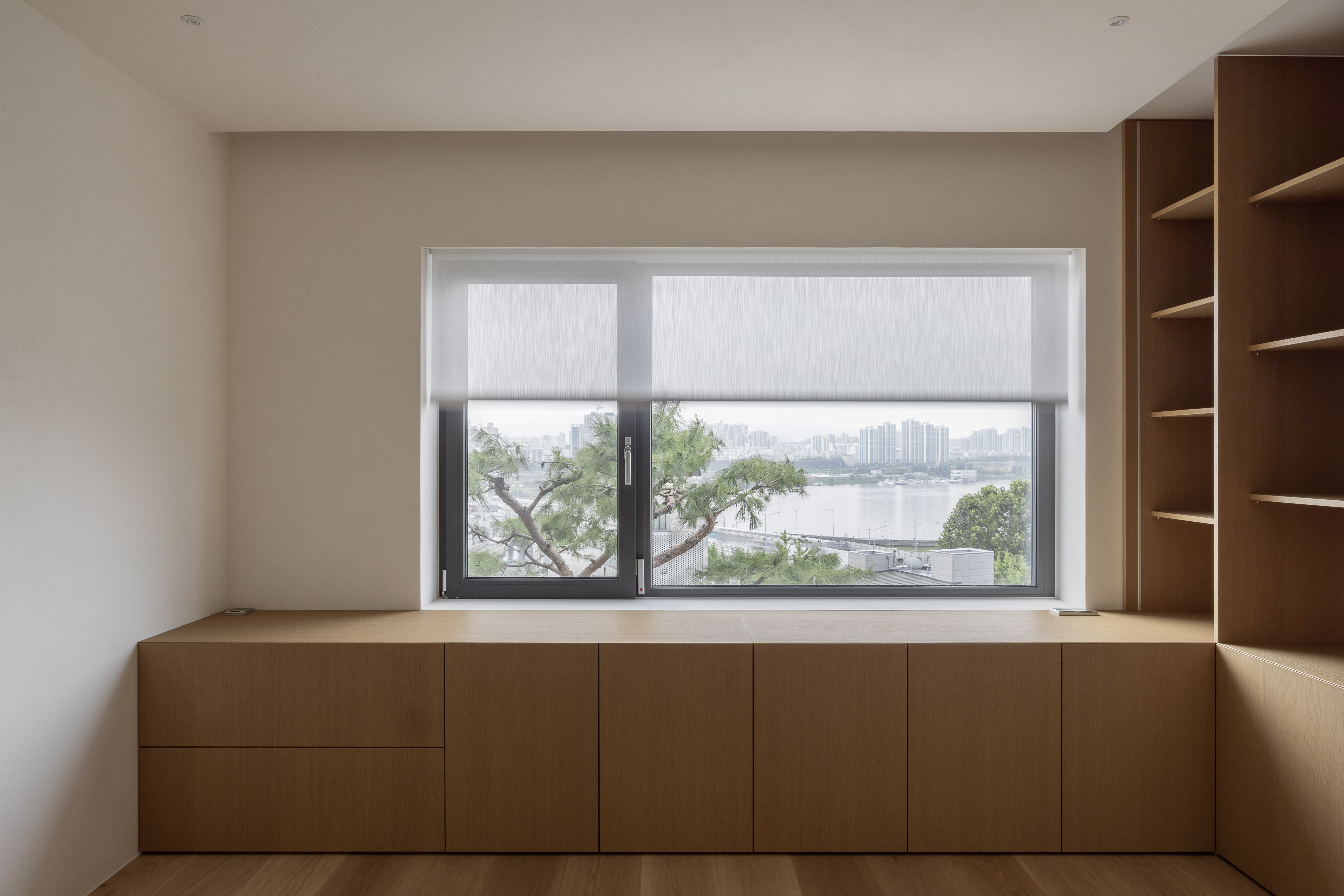This project reflects our studio’s calm, understated approach, using natural materials to enhance warmth and tactility while maximizing the Han River view. A reconfigured layout and a soft, balanced palette create a harmonious and functional living environment.