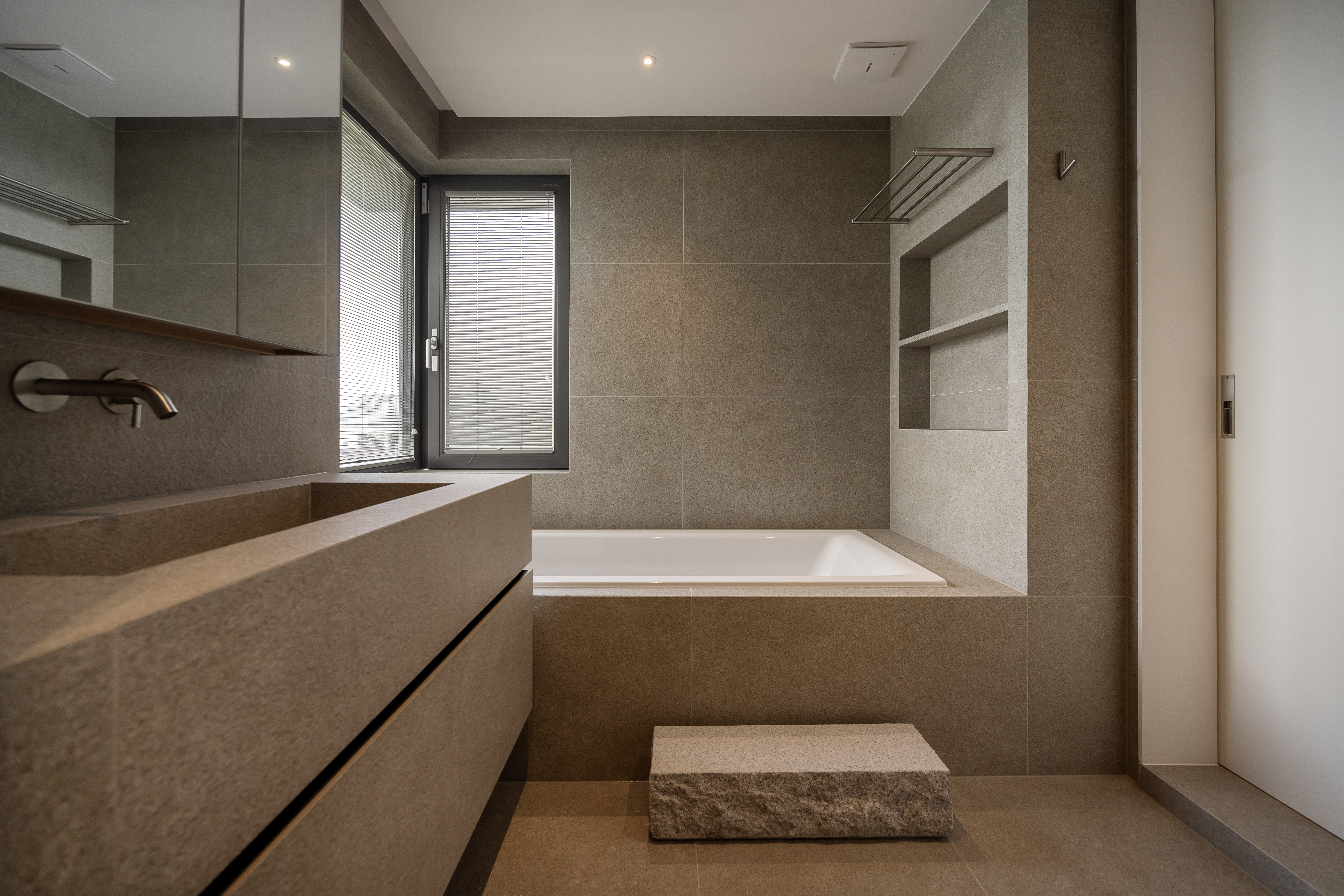 경험 특히 손끝으로 느끼는 촉감을 중오하게 생각하여 천연석이나 원목 같은 자연 소재를 신중하게 통합하고 시간이 지날수록 공간의 온기가 깊어지고 아름다움이 지속되도록 설계합니다.